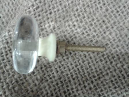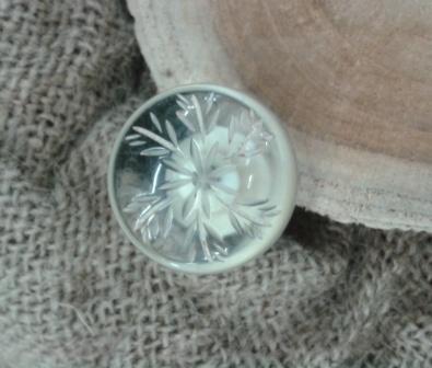 Möbelknopf aus Acryl mit hübschem Blumenornament. Dieser Knopf ist klar, schlicht und schön. Schraube und Gewinde sind messingfarben.