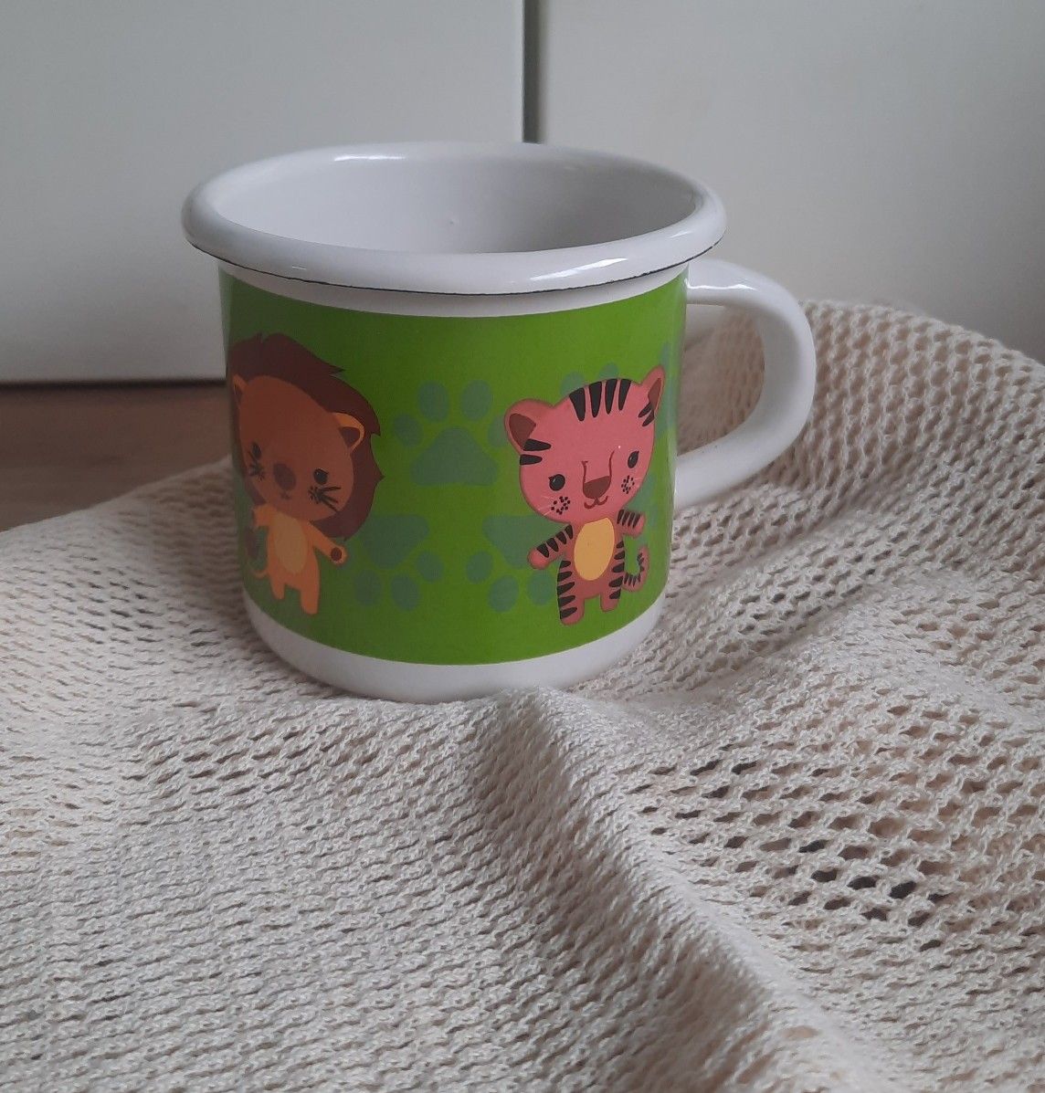 Becher f. Kinder TIERMOTIV grün Emaille 350 ml