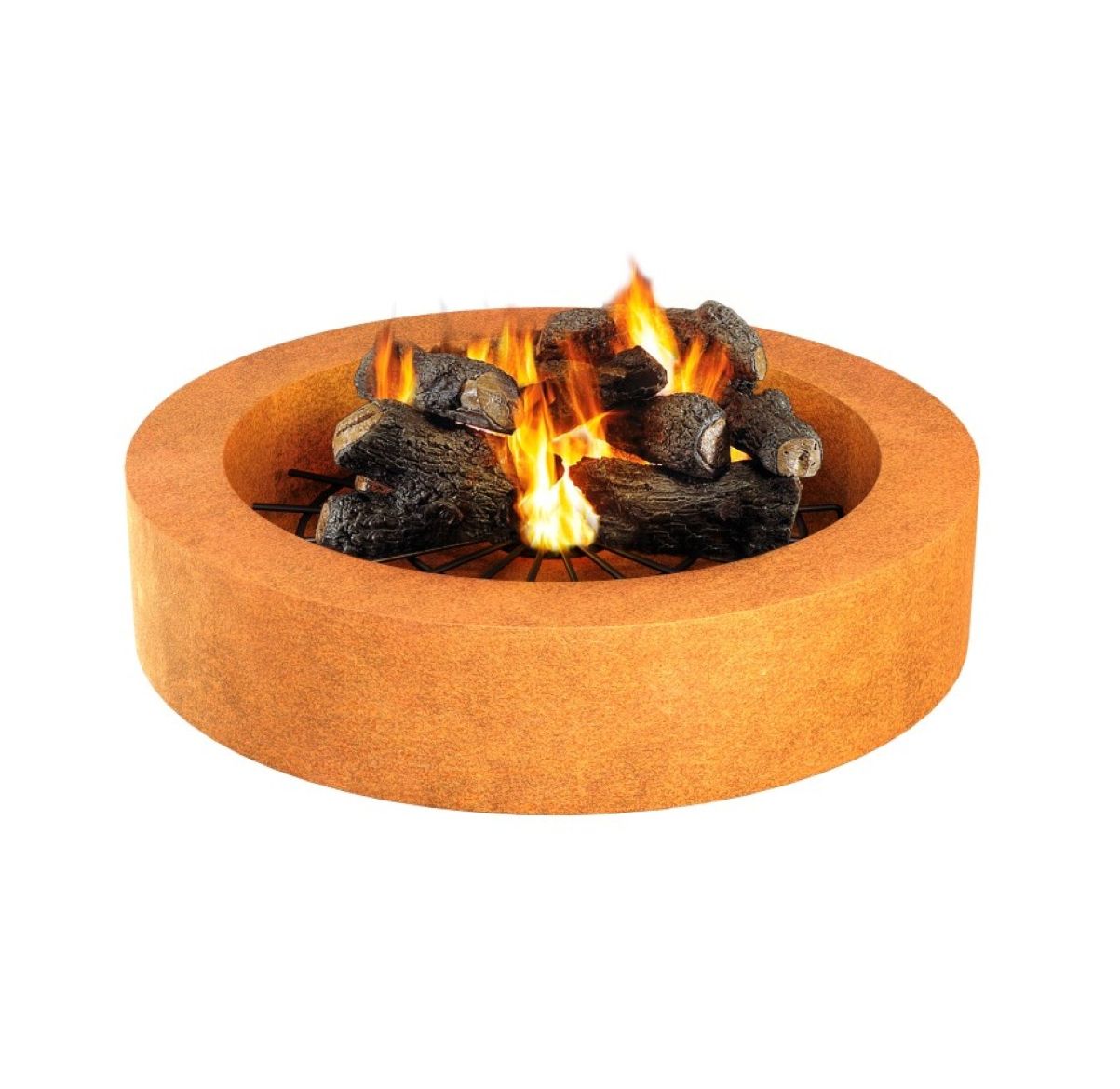 Dekorative runde Feuerschale aus Cortenstahl mit herausnehmbarem Rost. Für gemütliche Stunden im Garten ist diese Feuerstelle genau richtig, sie spendet Wärme und Wohlfühl-Atmosphäre und ist außerdem ein Schmuckstück in jedem Garten. Cortenstahl-Feuerstellen sind sehr langlebig und wartungsfrei.