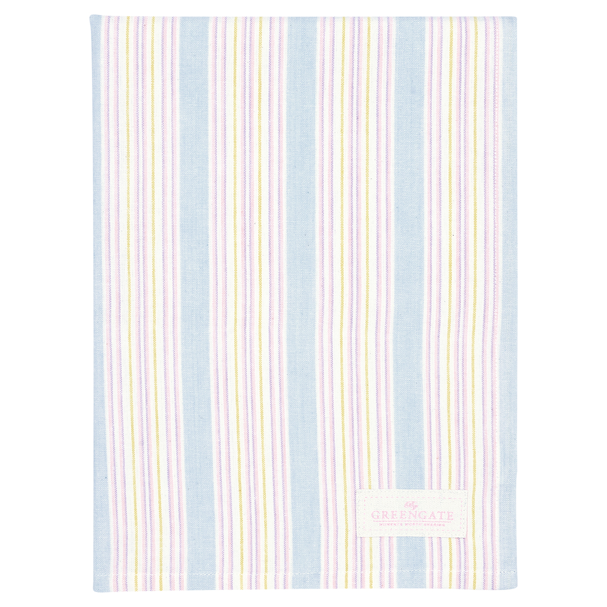 GreenGate Geschirrtuch Nera pale blue in den hübschen Pastellfarben Hellblau, Rosa und Gelb gestreift und aus reiner Baumwolle.