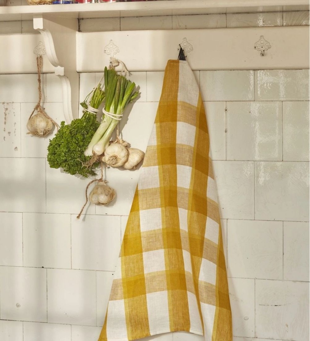 Geschirrtuch KARO Leinen gelb kariert 70x50 cm
