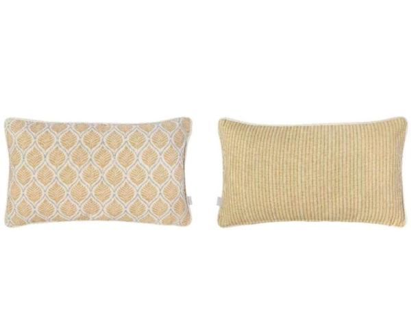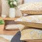 Der Kissenbezug in senf-gelb mit hübschem Blätter-Motiv und Akzenten in der Farbe creme und grau sorgt für eine beruhigende Atmosphäre. Die sanften Farben kombinieren sich perfekt mit verschiedenen Einrichtungsstilen und schaffen einen harmonischen Look. Ob im Wohnzimmer, Schlafzimmer oder sogar im Garten. Die andere Seite des Kissenbezuges hat ein schlichtes Streifen-Design, daher kann er gut als Wendekissen eingesetzt werden und ist somit ein stilvolles Dekorationselement.