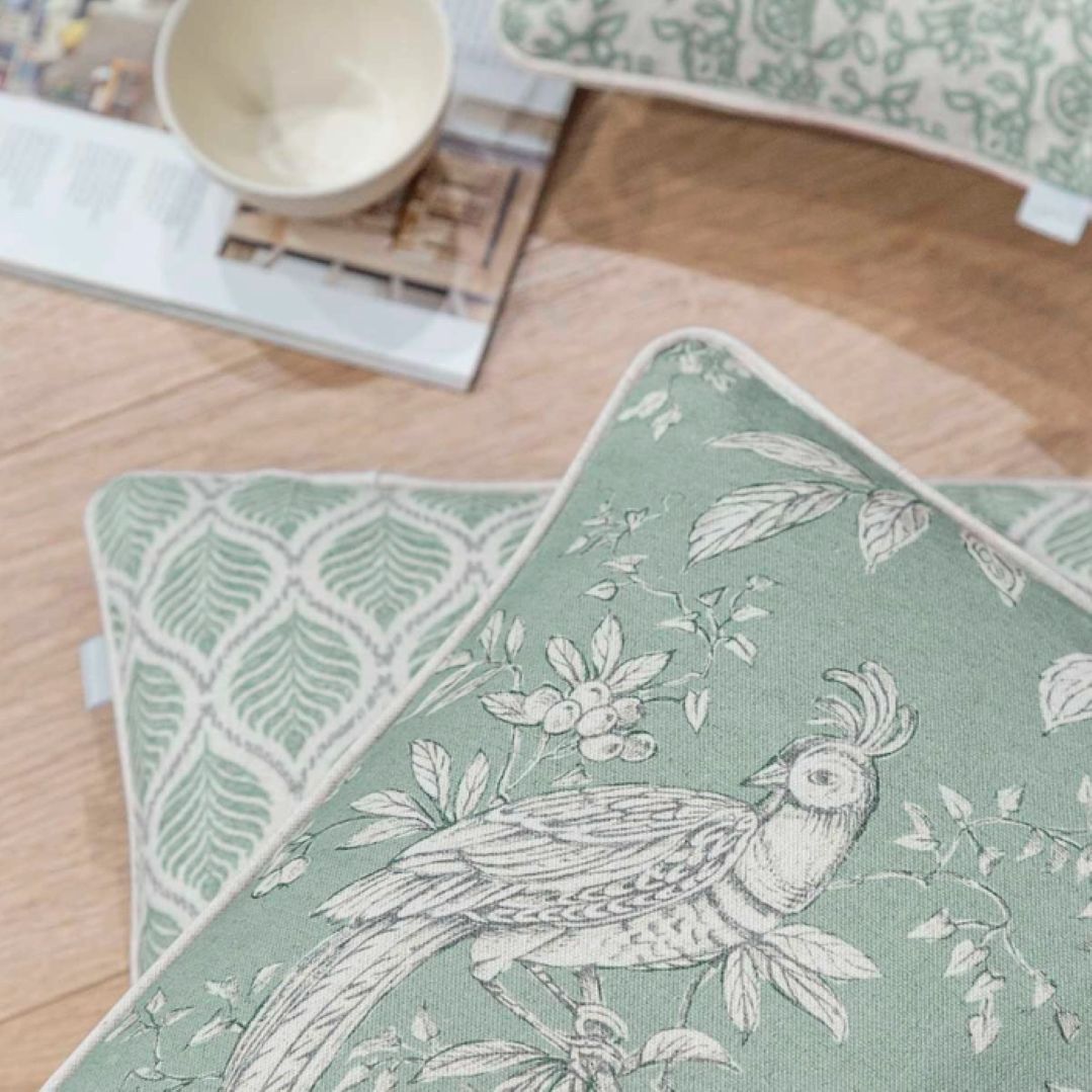 Der Kissenbezug in vintage-grün mit hübschem Blätter-Motiv und Akzenten in der Farbe creme sorgt für eine beruhigende Atmosphäre. Die sanften Farben kombinieren sich perfekt mit verschiedenen Einrichtungsstilen und schaffen einen harmonischen Look. Ob im Wohnzimmer, Schlafzimmer oder sogar im Garten – diese Kissenhülle passt überall hin. Die andere Seite des Kissenbezuges hat ein schlichtes Streifen-Design, daher kann er gut als Wendekissen eingesetzt werden und ist somit ein stilvolles Dekorationselement.