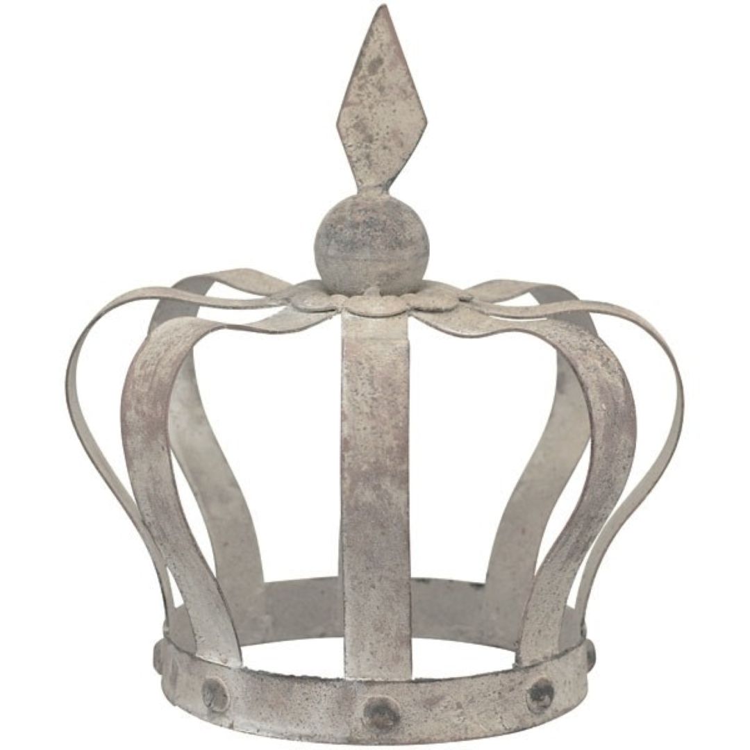 Krone aus Metall in hellem Grau im Shabby chic-Stil, als Deko im Garten, im Blumenbeet oder auf der Terrasse. Kronen lassen sich sehr gut dekorieren, sind eine hübsche Deko im Haus und im Garten und passt auch hervorragend zum rustikalen Landhausstil. Die Krone ist handgearbeitet und ein echter Hingucker.
