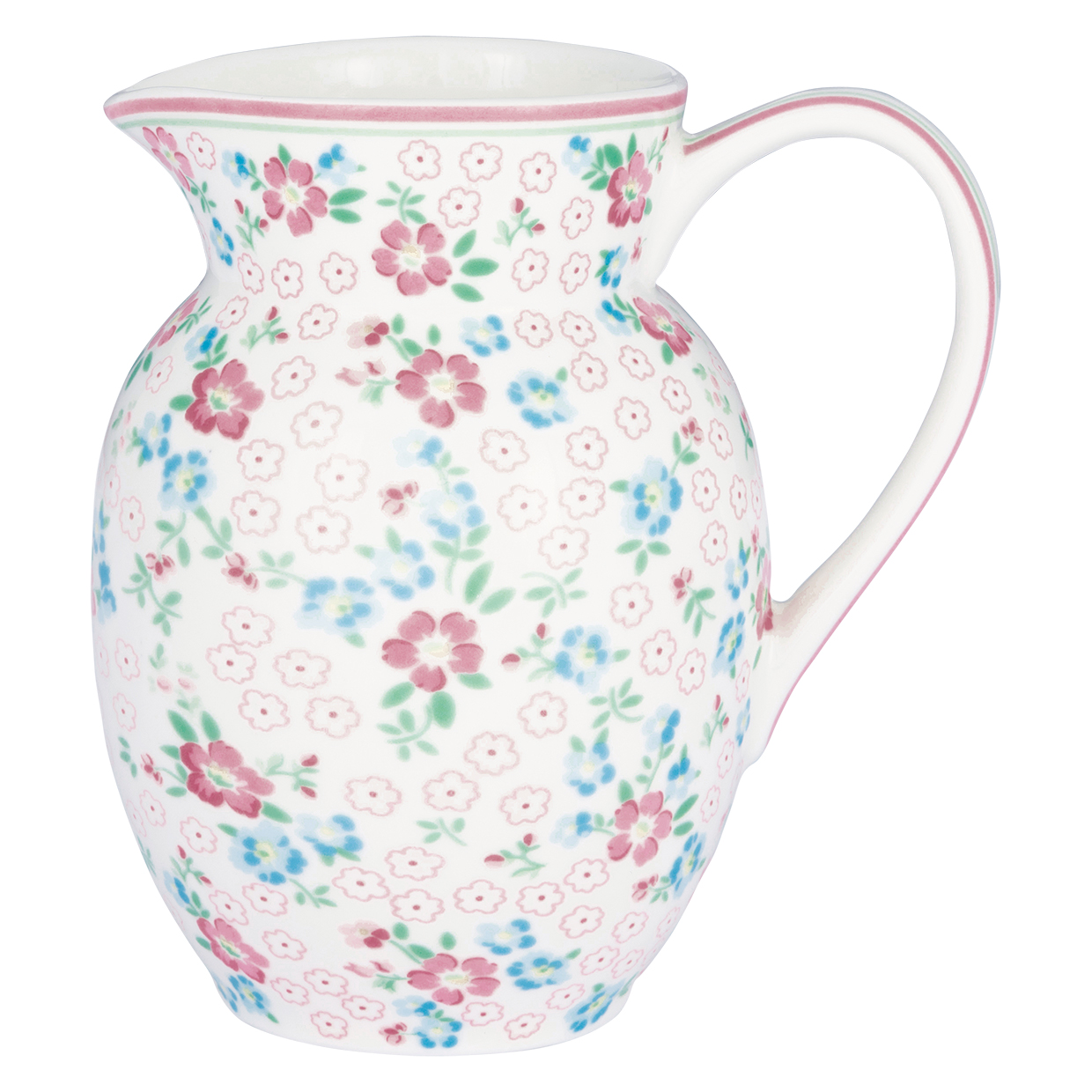 Dieser hübsche geblümte Krug Allyna white von GreenGate in nostalgischer Form mit kleinen Blumen in zarten Pastelltönen ist perfekt als Milchkännchen für die schön gedeckte Kaffeetafel und den Frühstückstisch.