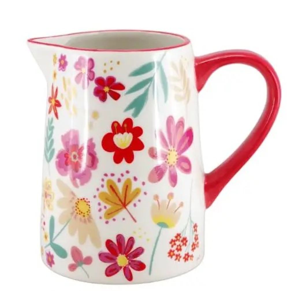 Hübscher Landhaus Krug mit buntem Blumen-Dekor aus Keramik. Der Krug mit einer Füllmenge von 900 ml ist perfekt für Milch, Saft und andere köstliche Getränke. Auch als Deko, Vase und Geschenk verfehlt er nicht seine Wirkung. Praktisch und dekorativ zugleich ist der geblümte Krug.