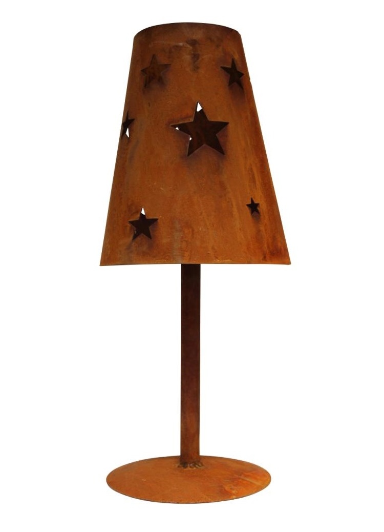 Wunderschöne Lampe aus Edelrost mit gelasertem Sterne-Motiv als Windlicht. Mit Kerzen oder einem Teelicht bestückt sorgt sie für gemütliches Ambiente im Garten, auf der Terrasse und im Haus. Edelrost-Gartendeko passt auch hervorragend zum rustikalen Landhausstil-Garten.