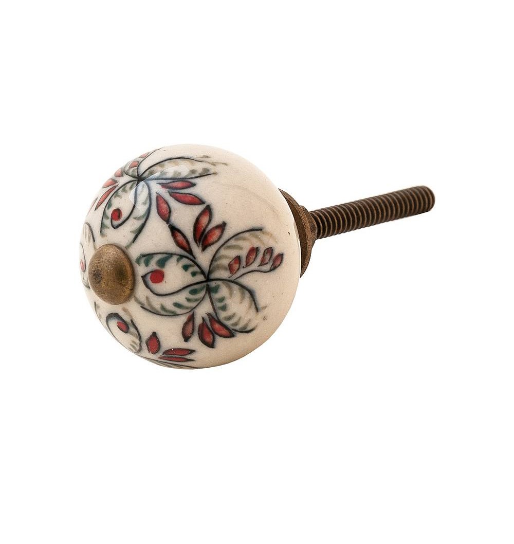 Möbelknopf in Kugel-Form aus Keramik mit Ranken-Muster in Dunkelrot. Ideal als Knauf für Schubladen, Schränke und andere Möbel. Mit diesem Möbelknauf erstrahlen alte Möbel in neuem Glanz.