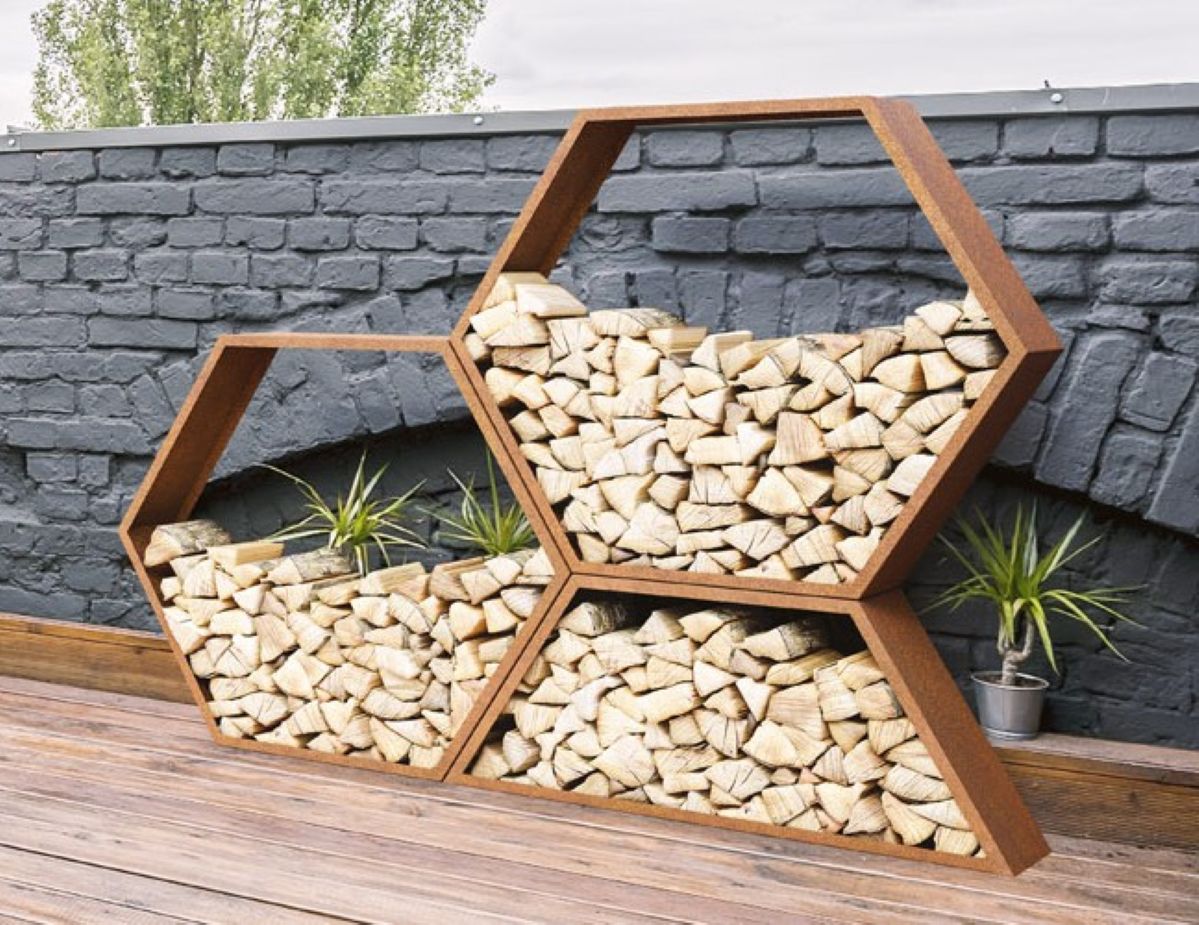 Dekoratives Regal aus Cortenstahl für die Holz-Lagerung und gleichzeitig als Eyecatcher im Garten oder auf der Terrasse. Das Brennholz-Regal sorgt für notwendige Luftzirkulation und beschleunigt den Trocknungsprozess und ist beliebig erweiterbar. Cortenstahl-Regale sind sehr langlebig und wartungsfrei.