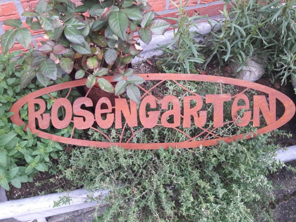Mit diesem dekorativen Schild Rosengarten aus Edelrost heben Sie Ihr Rosen-Beet so richtig hervor und haben gleichzeitig eine hübsche Dekoration im Garten. Edelrost-Deko passt hervorragend zum rustikalen Landhausstil und ist ein Hingucker in jedem Garten. Stabile Edelrost-Qualität, hergestellt in Europa.