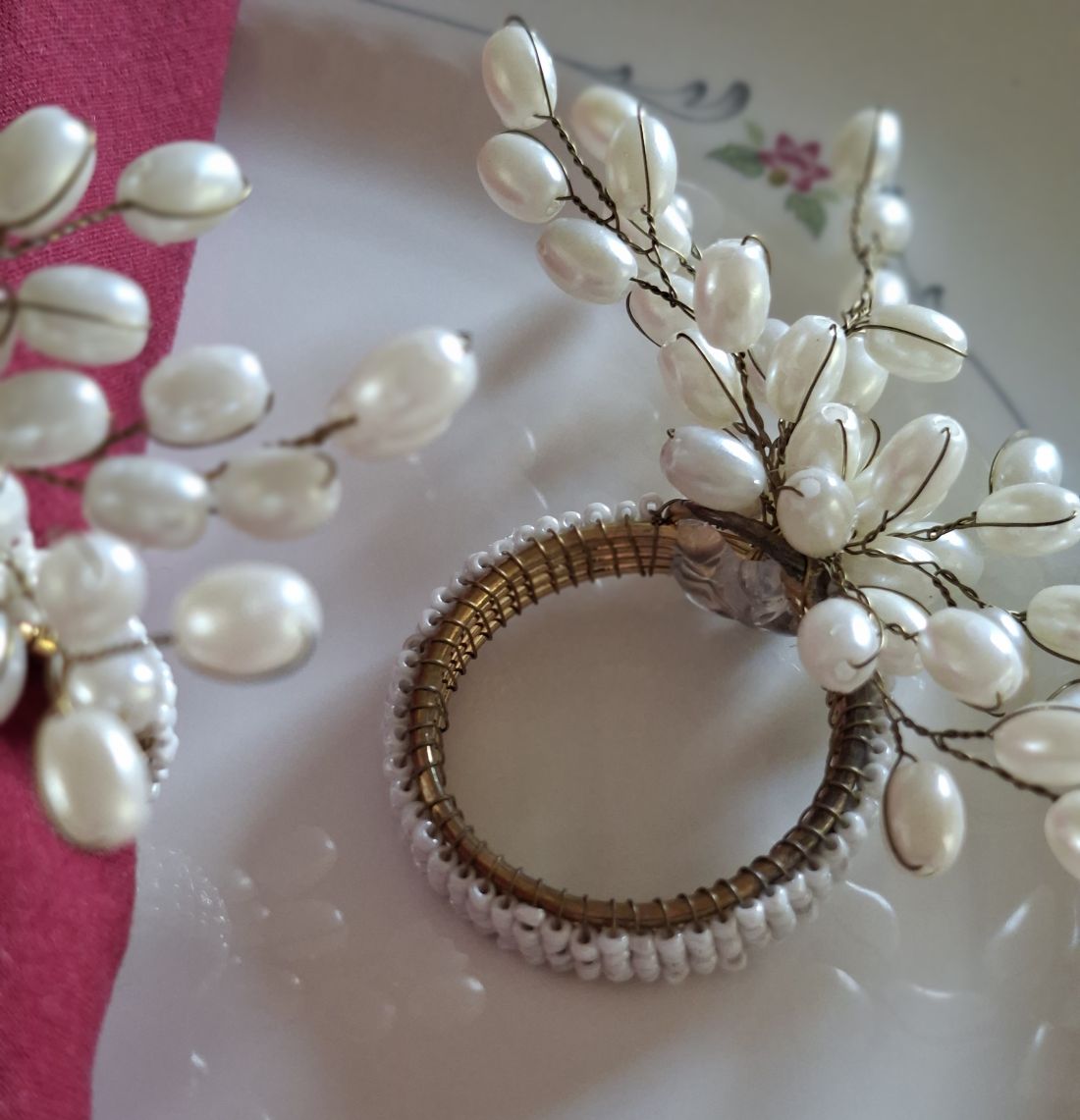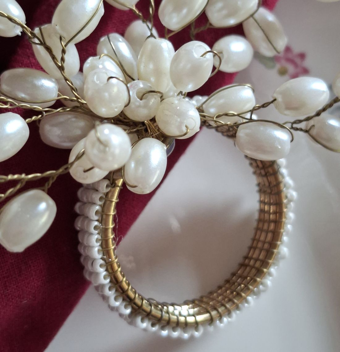 Serviettenring Set mit Perlen im Vintage-Look