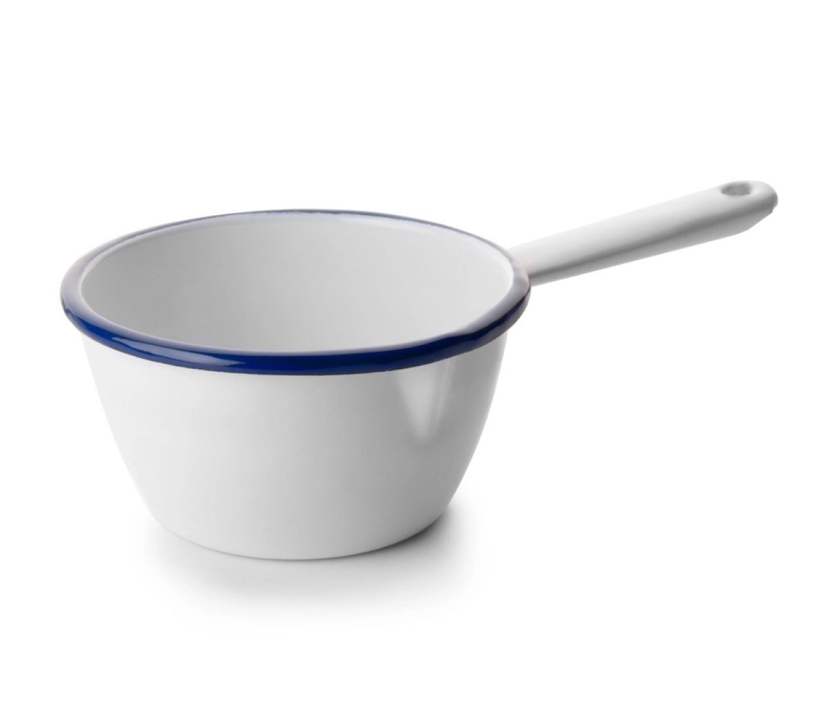 Der Stieltopf aus Emaille in weiß mit blauem Rand als Kasserolle ist ideal für den täglichen Gebrauch und bringt Vintage- und Landhaus-Flair in die Küche. Der Stieltopf ist geeignet für Elektro,- Gas- und Induktion. Auch als Camping-Geschirr oder Garten-Geschirr ist dieser Stieltopf perfekt geeignet und als Deko-Highlight in der Küche ebenfalls.