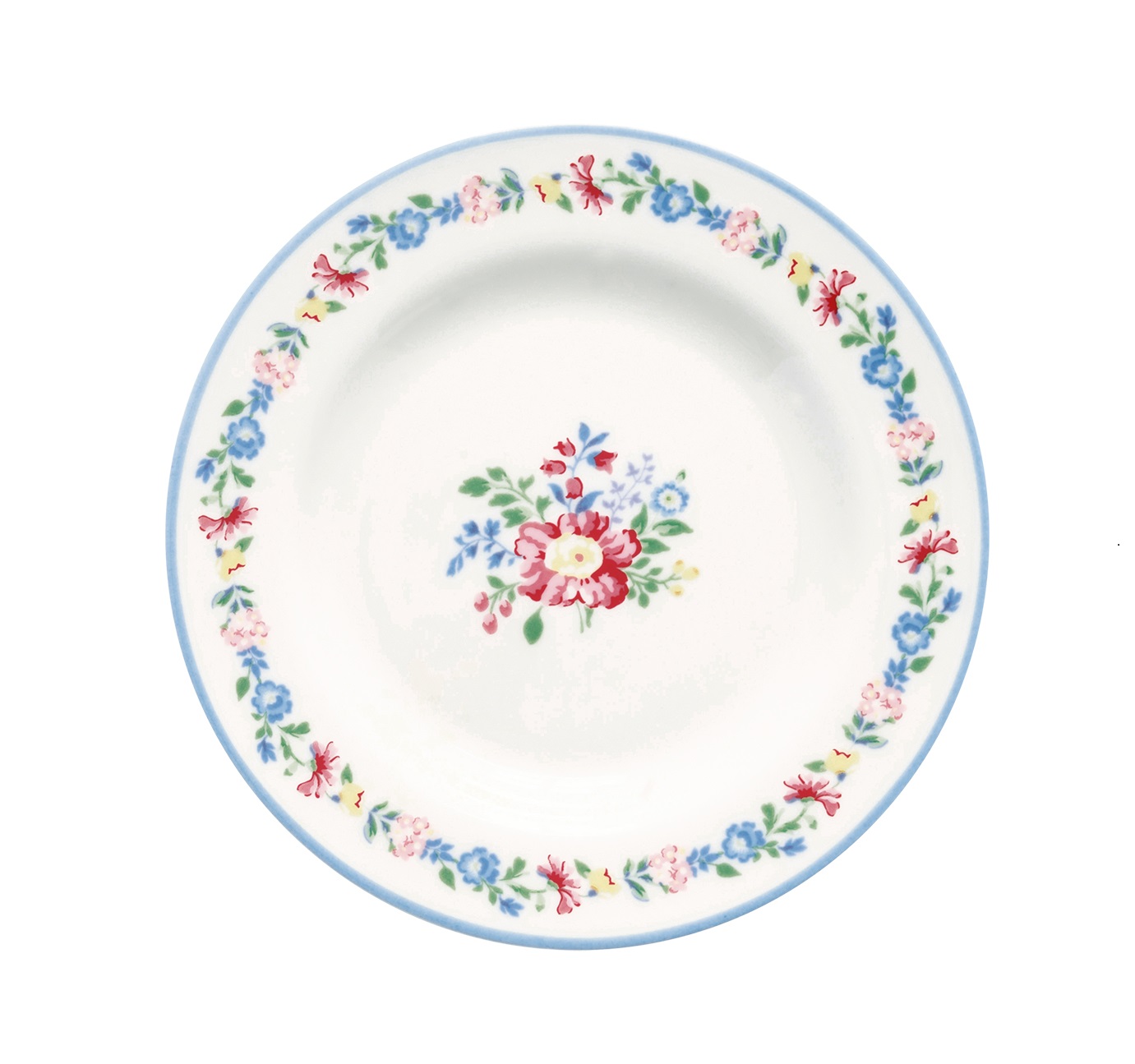 Hübscher Teller, Dessertteller Elina white von GreenGate mit Blumenrand und Blume in der Mitte. Dieser kleine Teller aus Porzellan ist ideal als Dessertteller und kleiner Gebäck- Kuchenteller. Er kann auch mit anderem GreenGate Geschirr wunderbar kombiniert werden.