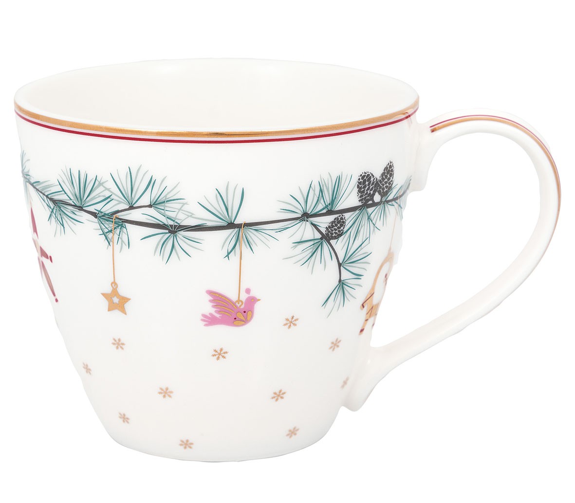 Diese bezaubernde Tasse Juana white von GreenGate als Weihnachtstasse und Kaffeebecher mit hübschem weihnachtlichen Muster und goldenen Details darf auf keinem Frühstückstisch fehlen. In der Advents- und Weihnachtszeit ist der Becher aus Porzellan mit Henkel ein Augenschmaus beim Kaffee- oder Teetrinken und auch ideal als Deko. Außerdem auch ein hübsches Geschenk für Lieblingsmenschen.
